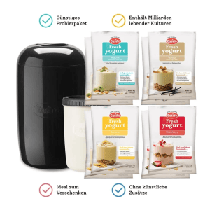 EasiYo bestellen? Bei uns bestellst du EasiYo Joghurt zu den günstigsten Preisen. Da wir große Mengen einkaufen, können wir EasiYo Joghurtpulver günstig anbieten. Außerdem ist es unglaublich einfach, EasiYo Joghurt zu kaufen. An der Kasse kannst du aus zahlreichen sicheren und anerkannten Zahlungsarten wählen. Kurz gesagt, in unserem EasiYo Shop bestellst du EasiYo Joghurt zum günstigsten Preis. Bist du ein echter Schnäppchenjäger? Dann abonniere unseren E-Mail-Newsletter. Einmal pro Woche senden wir dir EasiYo Angebote mit bis zu 50% Rabatt. Genau wie im Fernsehen gibt es auch bei uns ein tägliches EasiYo Angebot.