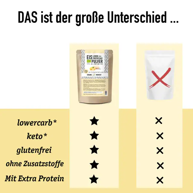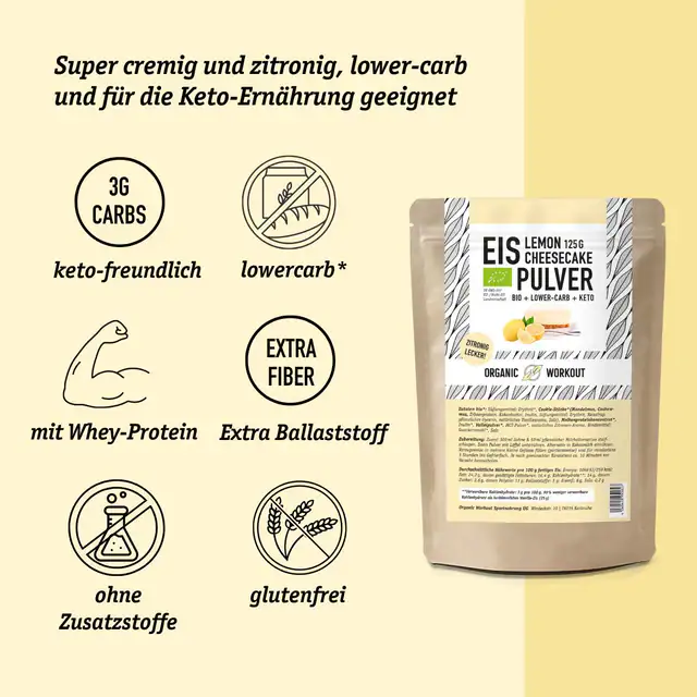 Süßungsmittel: Erythrit*, Cookie-Stücke*(Mandelmus, Cashewmus, Erbsenprotein, Kakaobutter, Inulin, Süßungsmittel: Erythrit, Reissirup, pflanzliches Gycerin, natürliches Vanillearoma, Salz), Molkenproteinkonzentrat*, Inulin*, Volleipulver*, MCT-Pulver*, natürliches Zitronen-Aroma, Verdickungsmittel: Guarkernmehl*, Salz