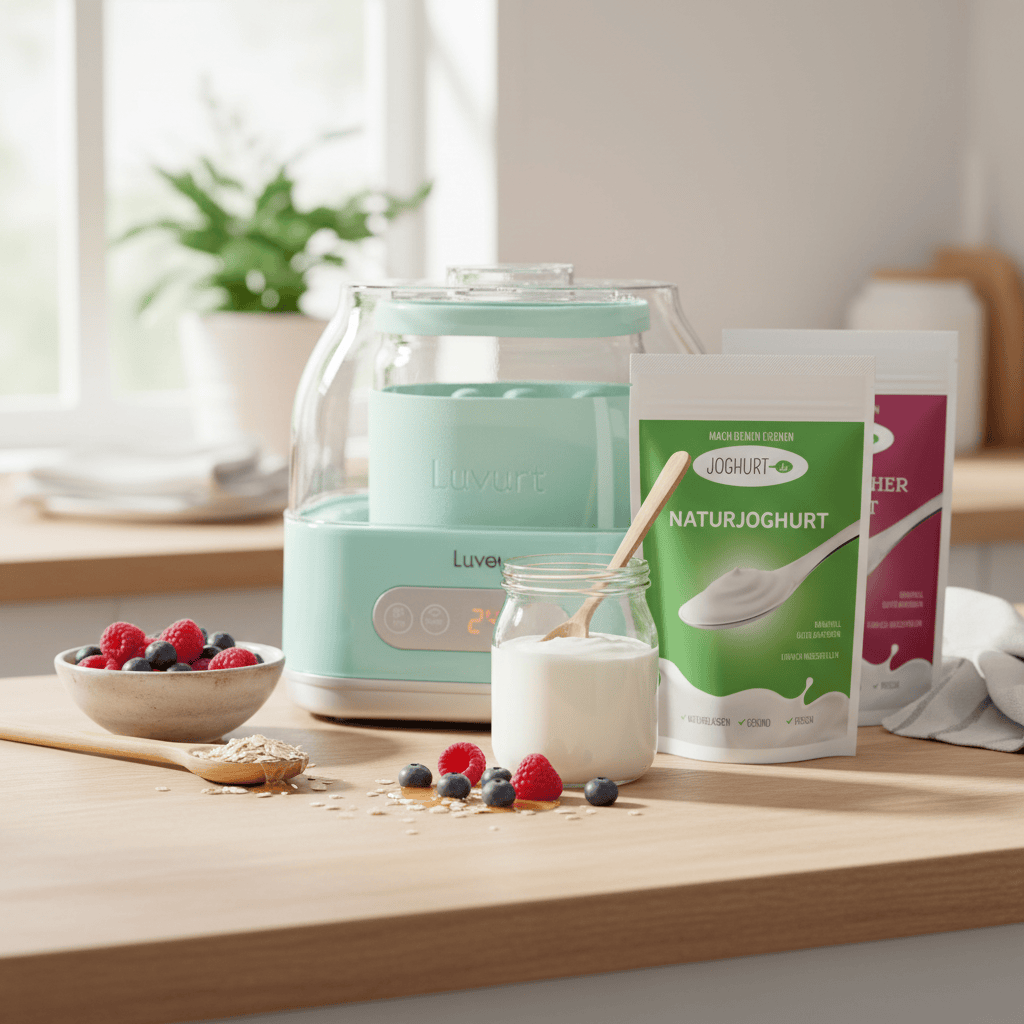Für alle, die direkt loslegen wollen, haben wir dieses Rundum-sorglos-Set zusammengestellt. Mit dem hochwertigen Joghurtbereiter von Luvele und unseren beiden Joghurtkulturen wird das Joghurtmachen zum Kinderspiel. Ob mild oder typisch bulgarisch säuerlich – du entscheidest, welcher Geschmack in deinem Glas landet!